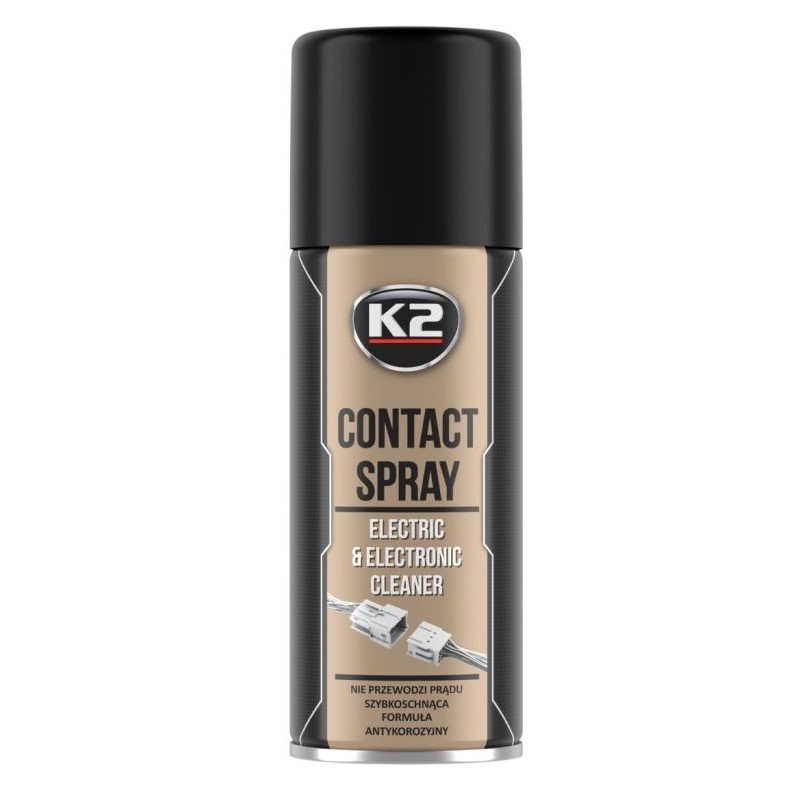 K2 Contact Spray jest środkiem odtłuszczającym i zabezpieczającym części elektryczne. Służy do usuwania tlenków, siarczków oraz innych zabrudzeń, posiada właściwości penetrujące i rozpuszczające zanieczyszczenia. Nie przewodzi prądu, chroni przed wilgocią, korozją i rdzą. Może być stosowany do elementów , takich jak: wtyczki, styki, złącza, przewody, przełączniki, żarówki, bezpieczniki itp. Użycie K2 Contact przywracana niską rezystancja styku i zmniejsza spadki napięć. Idealny do konserwacji bez demontażu. Szybkoschnący.