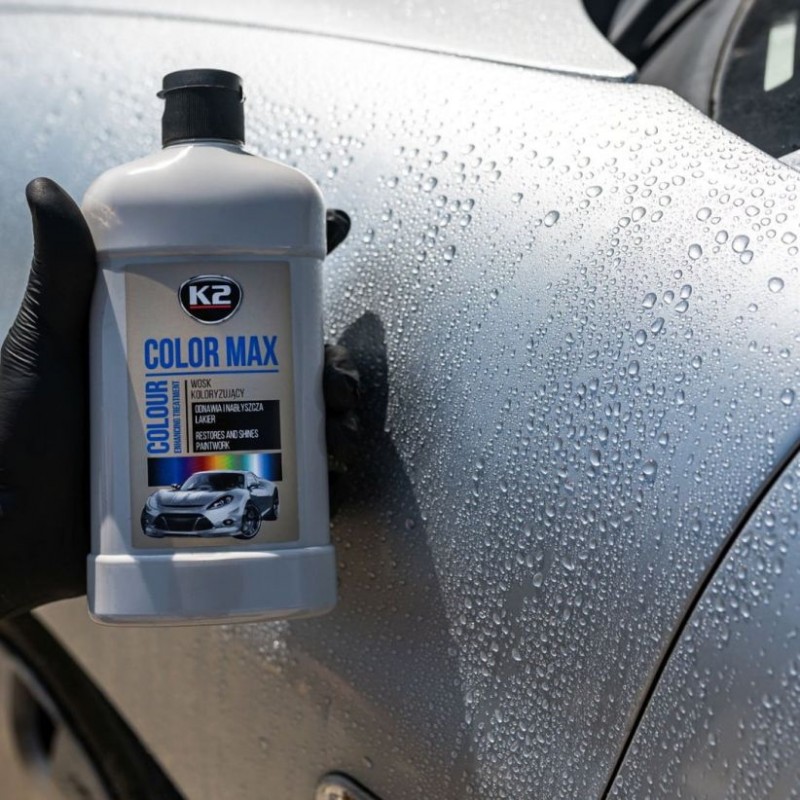 K2 Color Max - wosk koloryzujący dostępny w 9 popularnych kolorach. Nadaje się do wszystkich typów lakierów samochodowych, również metalizowanych. Doskonale ożywia kolor, a dzięki zawartości wosku Carnauba przywraca dawny połysk lakieru.