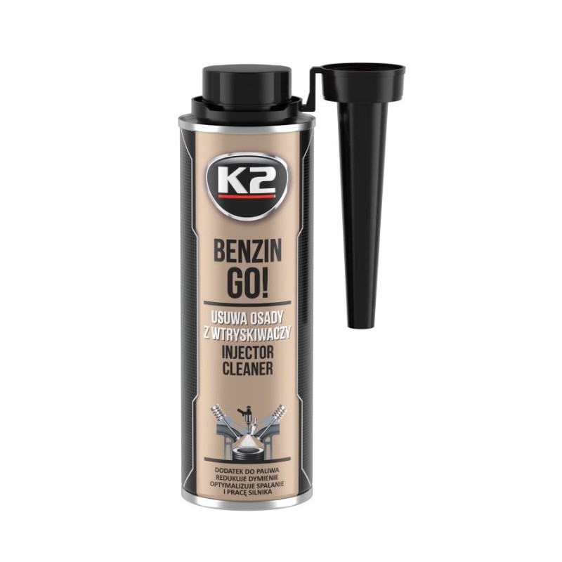 K2 Benzin Go! 250 ml to profesjonalny, specjalistyczny dodatek do paliwa, przeznaczony do czyszczenia wtryskiwaczy w silnikach benzynowych.