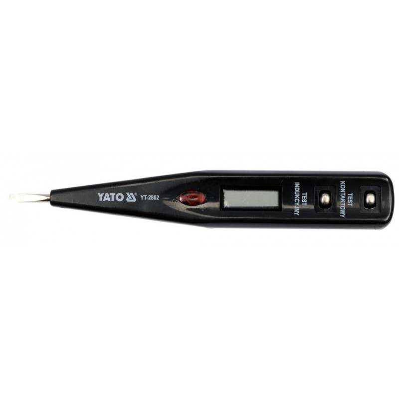 Próbnik napięcia YT-2862 z wyświetlaczem LCD umożliwia stwierdzenie obecności napięcia elektrycznego AC oraz wykrywanie napięcia AC metodą indukcyjną. Obecność napięcia sygnalizowana jest wskazaniem na wyświetlaczu LCD, a w przypadku metody kontaktowej również zaświeceniem się diody.