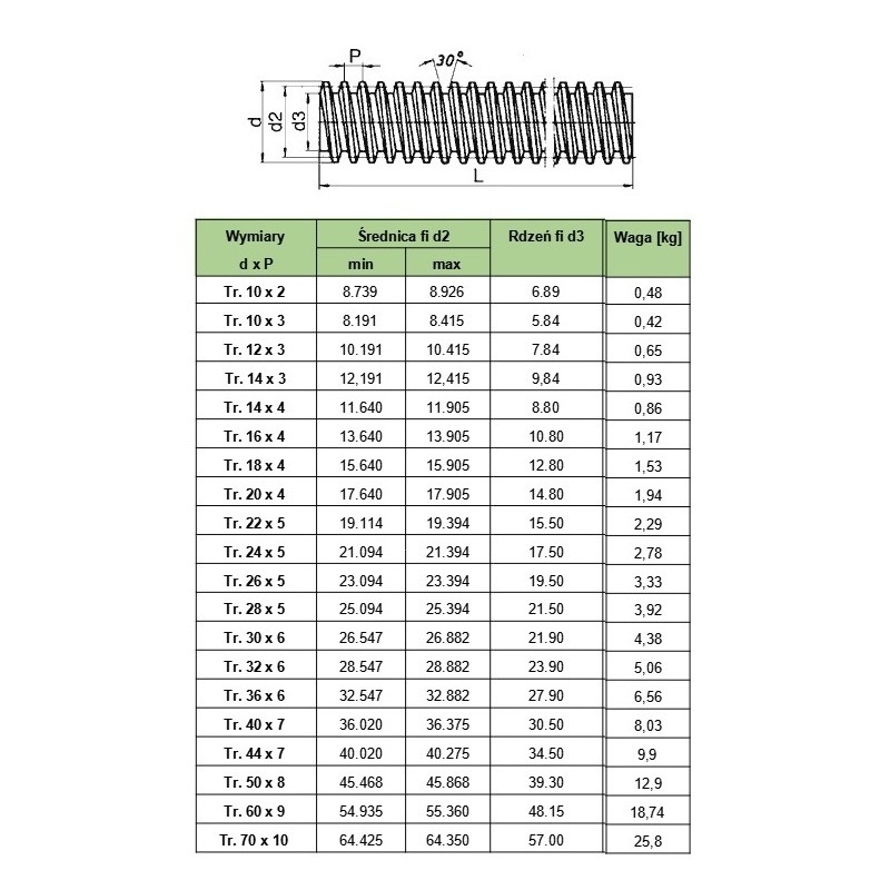 - Gwint: trapezowy prawy
