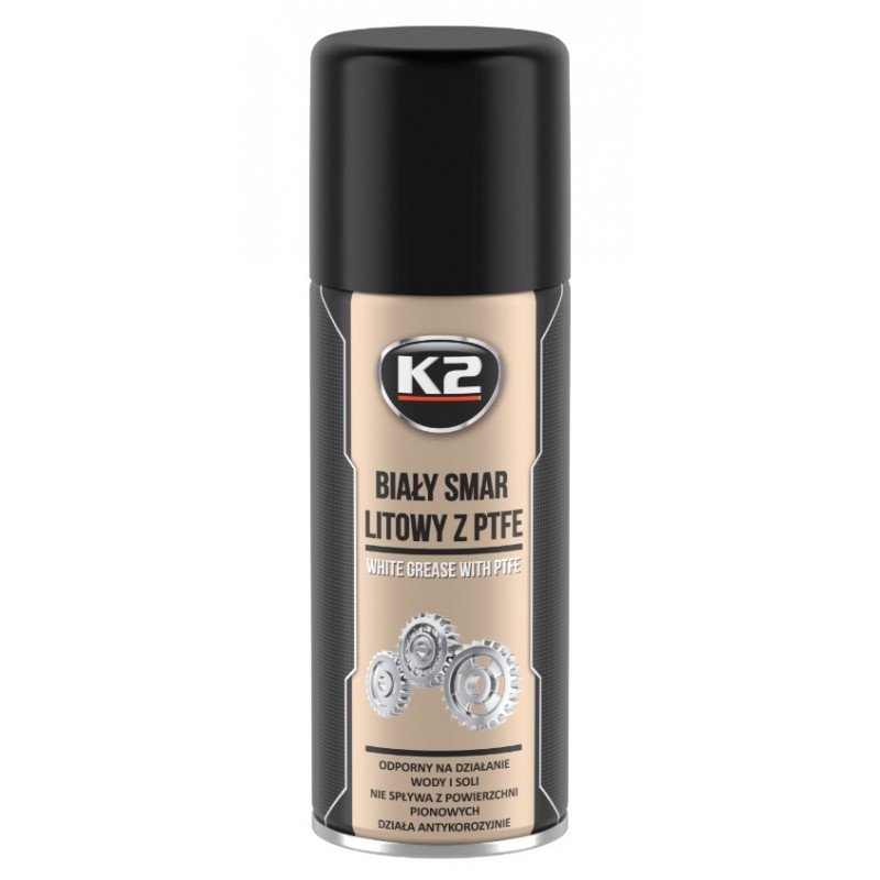 K2 BIAŁY SMAR Posiada unikalna formułę. Najpierw w postaci pianki dokładnie penetruje, a dopiero potem tężeje. Redukuje tarcie, usuwa wilgoć, eliminuje skrzypienie i chroni przed korozją. Idealny do smarowania części pracujących ze sobą w małych tolerancjach na granicy metalu z metalem lub metalu z plastikiem. Pozostawia grubą i niezwykle trwałą warstwę smarująco-ochronną, która jest odporna na działanie warunków atmosferycznych nie roztopi się, nie spłynie, nie zamarznie.
